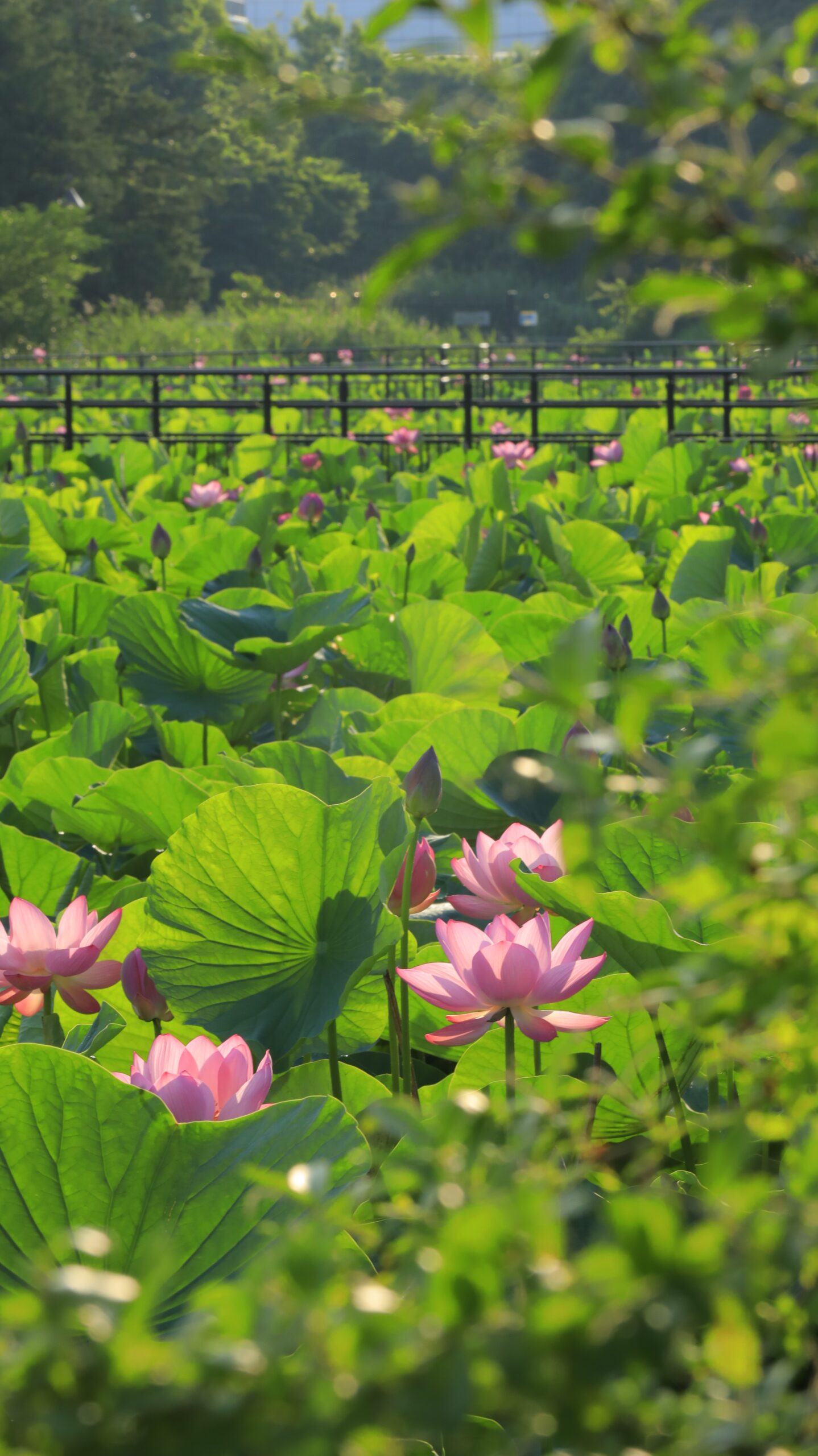とくにおすすめの時間帯は、日の出前後の早朝。広々とした園内にやわらかな朝日が差し込み、古代蓮の花が静かに咲き始める瞬間や、花菖蒲・紫陽花が朝露に濡れて輝く様子を美しく捉えることができます。