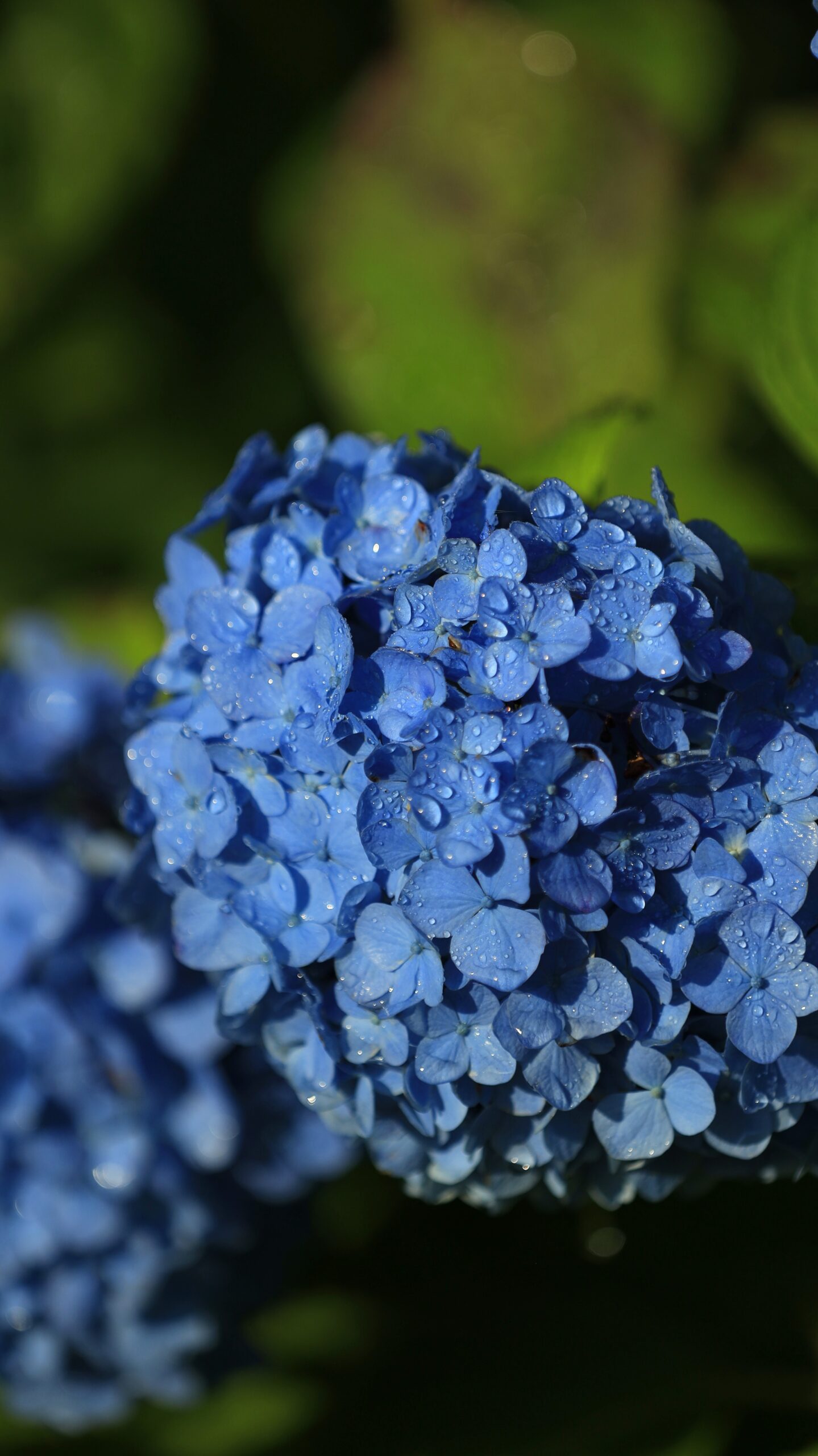 2025年 水元公園|青紫陽花のしずくアップ この写真は、水元公園の青い紫陽花をクローズアップで撮影し、花びらに残る雨のしずくの細かな表情をとらえたものです。 2025年2025年6月6月東京都水元公園紫陽花花