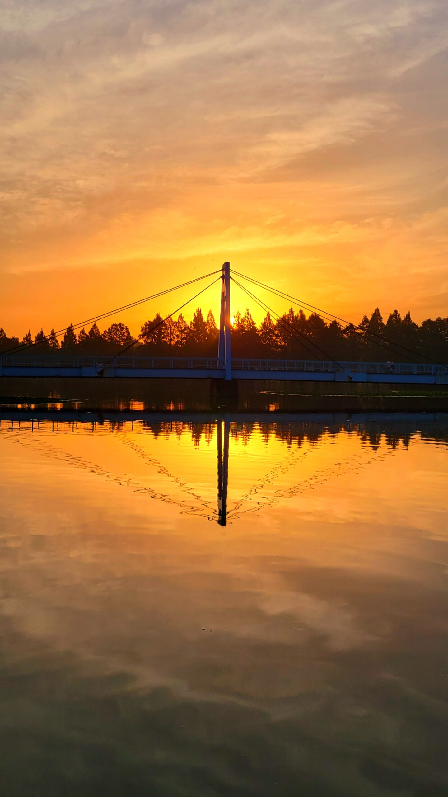 2023年 水元公園|水元公園の秘密!朝日のリフレクションが織りなす静寂の美 水元公園にある橋と朝日のリフレクションです。ダイヤモンドの形になりますね。 2023年2023年5月5月公園・テーマパーク・建物朝焼け・夕焼け東京都水元公園