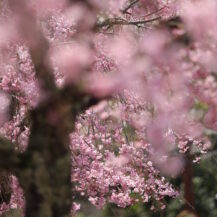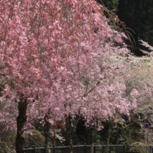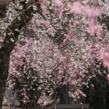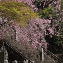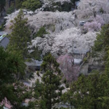 この写真は、身延山久遠寺で、高い位置から見下ろす形で、下に広がるたくさんの桜を撮影したもので、広がりのある絶景を表現しています。