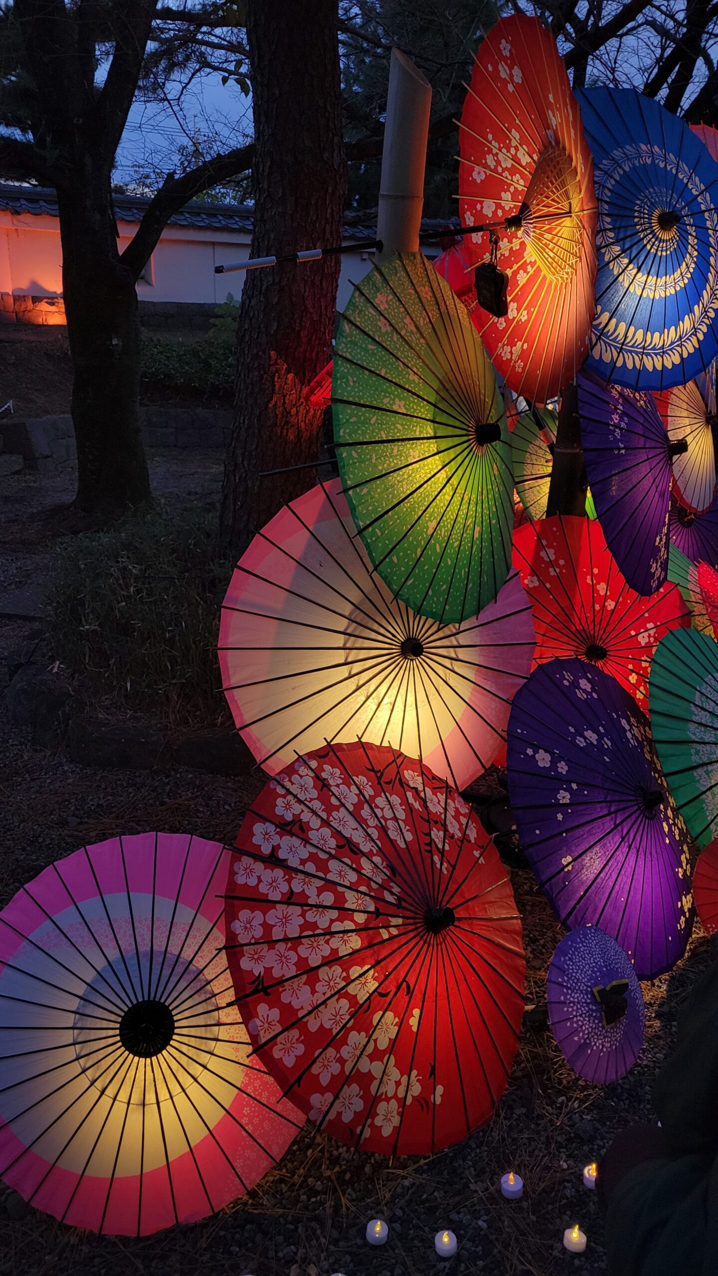 11月 忍城|幻想的な夜の饗宴!忍城の和傘ライトアップ 埼玉県行田市にある忍城のライトアップの和傘です。月に一度のライトアップで、綺麗な和傘のライトアップが楽しめます。 11月2023年2023年11月和傘埼玉県忍城神社・お寺・お城綺麗な景色