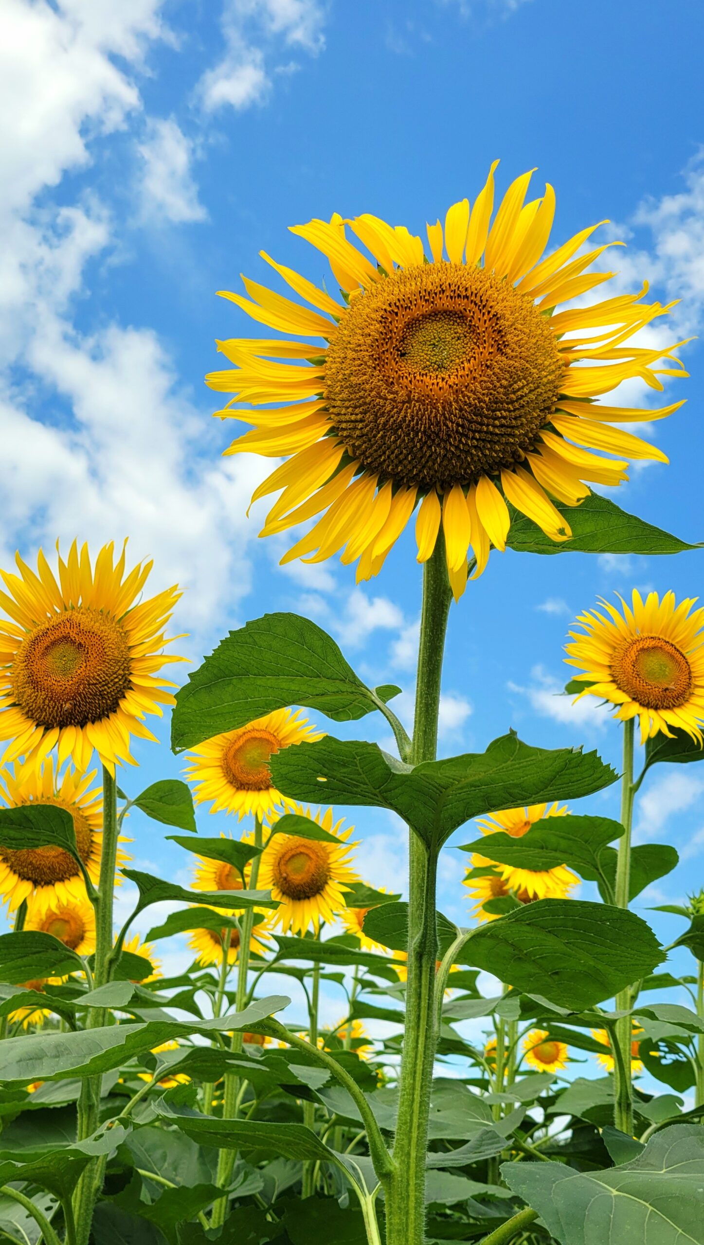 2024年 幸手権現堂|幸手権現堂の夏を彩るハイブリッドサンフラワーの絶景 2024年の幸手権現堂で見られる向日葵は、メインのハイブリッドサンフラワーです。撮影する際は、少し下から見上げるようにして、青空と雲を背景に取り入れることが重要です。また、奥にある向日葵もしっかりと写すことで、奥行きと立体感を表現することがポイントとなります。 2024年2024年7月7月公園・テーマパーク・建物向日葵(ひまわり)埼玉県幸手権現堂花