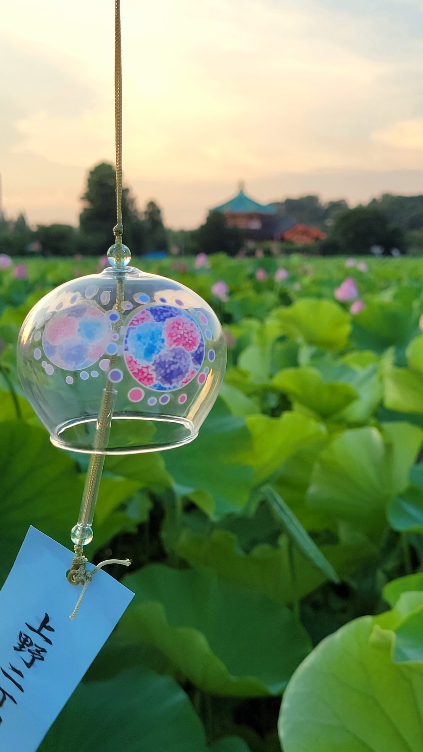 2024年 不忍池|夏の風物詩 蓮の花と風鈴の共演 上野の不忍池に特別設置された風鈴を撮影してみました。手前の風鈴にピントを合わせ、奥の蓮の花と弁天堂をぼかしてみました。 2024年2024年7月7月不忍池公園・テーマパーク・建物東京都綺麗な景色花蓮風鈴