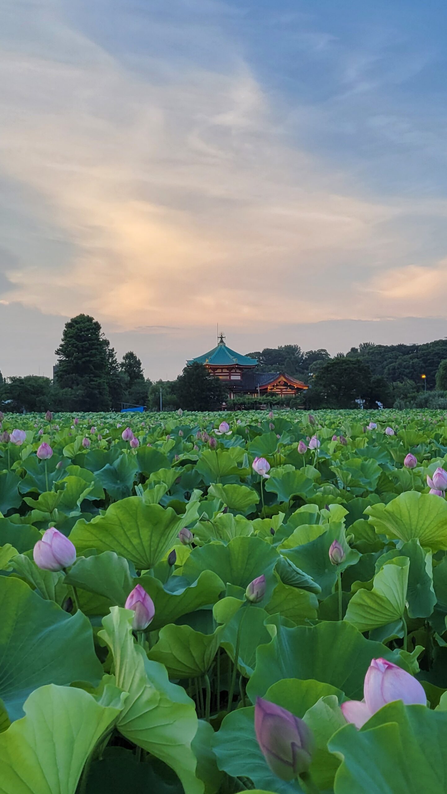 2024年 不忍池|夏の風鈴と蓮が織りなす癒しの景色 上野の不忍池の蓮と弁天堂の夕暮れを撮影しました。夕方の写真なので、蓮の花は閉じていました。雲が思ったよりも厚く、夕焼けにならなかったのが残念でした。2025年には、夕焼けと蓮の花、そして弁天堂をしっかりと撮影したいと思いました。 2024年2024年7月7月不忍池公園・テーマパーク・建物東京都花蓮