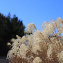 この写真は、国営ひたち海浜公園で、きらきら光るススキと青空の様子を撮影したものです。