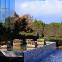 この写真は、国営ひたち海浜公園で、テラスを外側からアイスチューリップと一緒に撮影したものです。