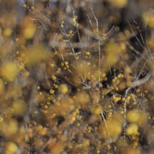 この写真は、国営ひたち海浜公園で、綺麗な蝋梅がポツポツ咲く様子を撮影したものです。