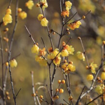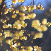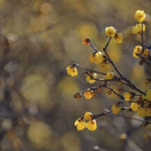 1月 国営ひたち海浜公園|玉ボケ背景 この写真は、国営ひたち海浜公園で、蝋梅の枝にピントをあわせて、後ろの蝋梅を玉ボケさせたものです。 1月2026年2026年1月国営ひたち海浜公園花茨城県蝋梅(ロウバイ)