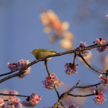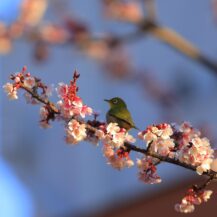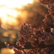 この写真は、熱海の海で、朝焼けが美しく広がる空と海の色合いを捉えたものです。