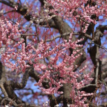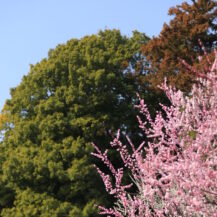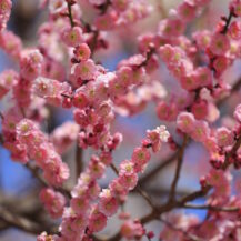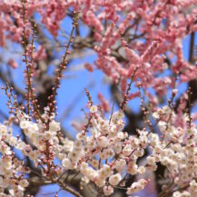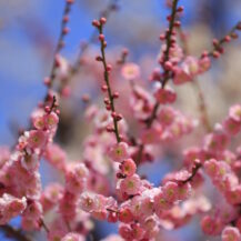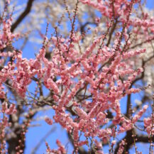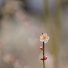 この写真は、偕楽園で、形の綺麗な梅の花が枝の先に一輪だけ咲く様子を撮影したものです。