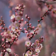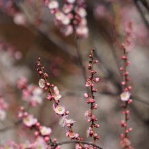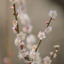 2026年 偕楽園|枝先に咲く一輪の梅の花の可憐なクローズアップ