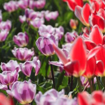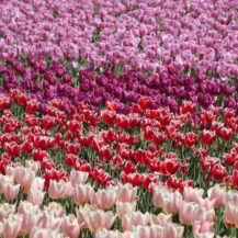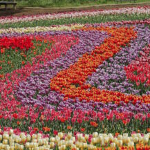 この写真は、東京ドイツ村で、チューリップがS字状にうねる美しい模様を描く様子を撮影したものです。