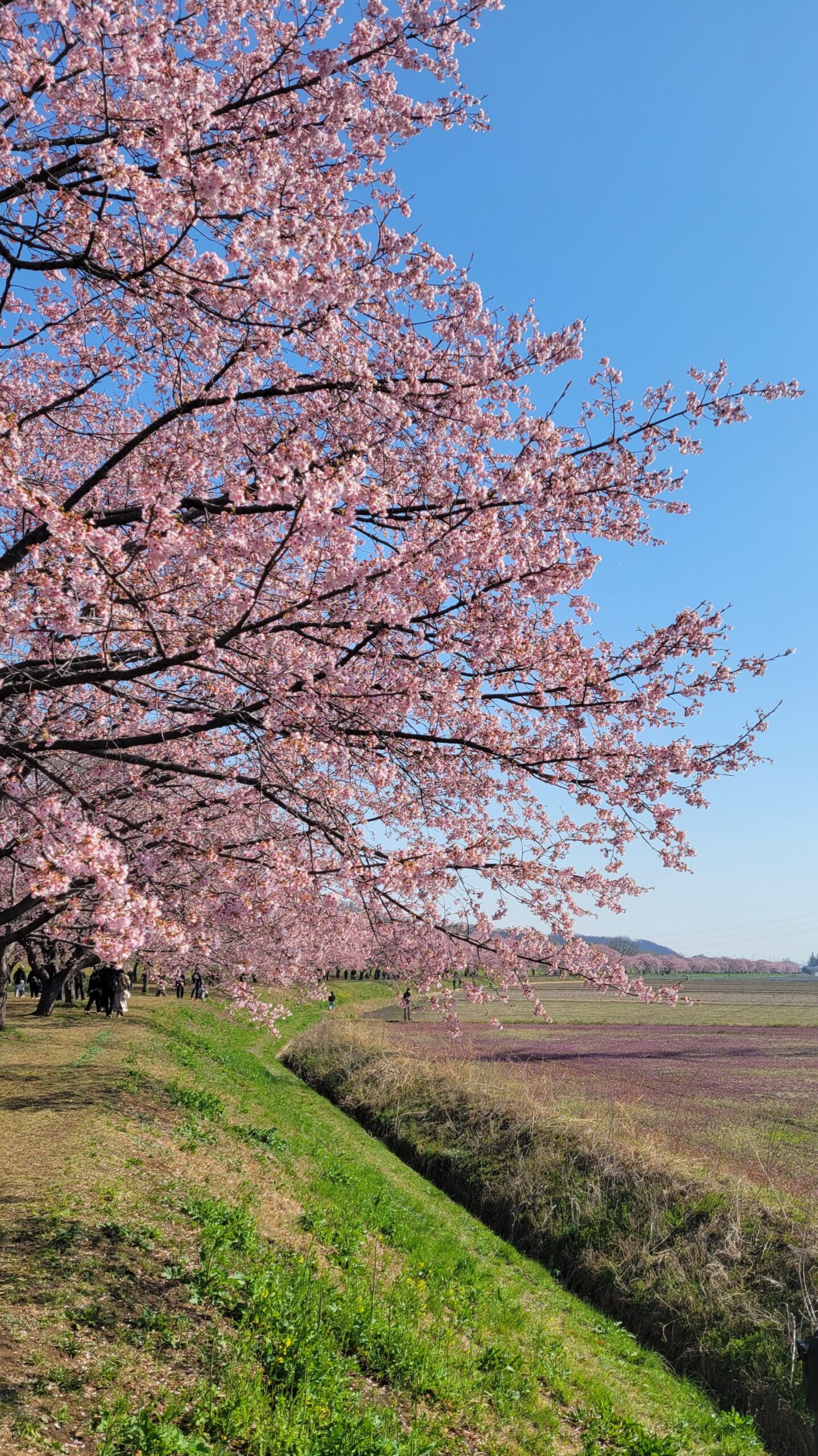 This photo was taken at Kita-Asaba Sakura Tsutsumi Park and includes the full-blooming Ayuki cherry blossoms and the line of the embankment, as well as the nuances of leaf burn. This is one of those pictures where you can also feel the changes in nature.
