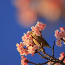 This photo was taken at Hokoen (Minami-Boso), where dignified white-eyes and early-blooming cherry trees line up.