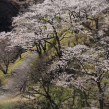 撮影のポイントは、桜だけに注目するのではなく、背景にある妙義山をしっかりと構図に取り入れることです。桜と山のバランスを意識し、あえて山の比率を多めにすることで、この場所ならではの迫力とスケール感を表現することができます。また、斜面や高低差を活かして、見上げる構図や見下ろす構図を使い分けることで、写真に立体感と変化を加えることができます。さらに、手前・中景・奥と桜を重ね、奥に妙義山を配置することで奥行きのある構図を作るのも効果的です。