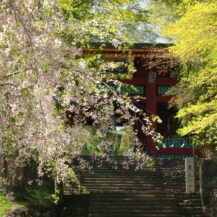 妙義神社は、歴史ある石垣と桜が織りなす、重厚で落ち着いた雰囲気の中で撮影が楽しめるスポットです。華やかな桜名所とは異なり、石垣や建築物と組み合わせることで、どこか“静けさ”や“奥行き”を感じさせる写真が撮れるのが魅力です。特に、石垣の上に咲く桜は印象的で、見上げる構図にすることで、空へと広がるようなダイナミックな一枚を撮影することができます。また、境内は光と影のコントラストが生まれやすく、暗がりの中で浮かび上がる桜や、新緑と重なる柔らかな光の表現など、多彩な表情を見せてくれます。