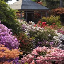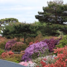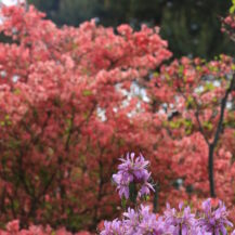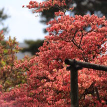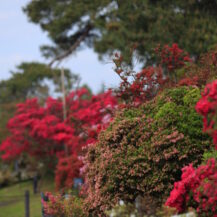 The key to taking photographs is to create a composition that takes advantage of the rich colors of azaleas and the depth of the park as a whole. In areas where flowers bloom densely, fill the picture with red, pink, and white azaleas to create a gorgeous and powerful image. If you pull back a bit and include the parkway and trees, you can express the expanse of the park and the atmosphere of a stroll. Also, if you use tall azaleas in the foreground and are aware of the flow of flowers toward the back, you can create a three-dimensional effect. On a sunny day, adding a bit of blue sky will enhance the vividness of the flowers and create a bright, spring-like landscape photo.