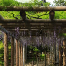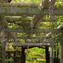 The key to photographing wisteria is to combine the calm atmosphere of the shrine with the soft flow of the wisteria's flower clusters. Shooting from the bottom of the wisteria trellis, looking up at the clusters of wisteria flowers, will create a striking image of purple flowers pouring down from above. Adding the approach to the shrine and the buildings on the shrine grounds in the background will add a Japanese atmosphere typical of Kuizu Shrine and give the photo a seasonal feel. Also, blurring the view of the shrine in the background with the flower clusters in the foreground will bring out the gentle hues of the wisteria. Aiming for the gentle morning light makes it easier to capture a quiet atmosphere with few people.