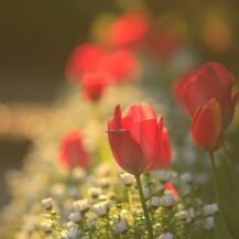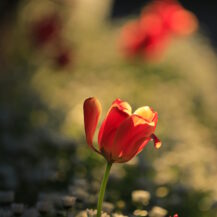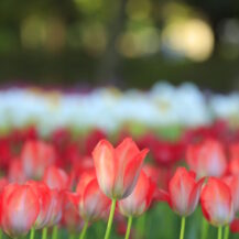 撮影のポイントは、チューリップを主役にしながら“背景の抜け”を意識することです。空や遠景をうまく取り入れることで、窮屈にならず開放感のある写真に仕上がります。また、ローアングルでチューリップを見上げる構図にすることで、花の存在感を強調しつつ背景をシンプルに整理することができます。逆光を使えば花びらが透けてやわらかい雰囲気になり、順光では色がしっかり出て鮮やかな印象になります。