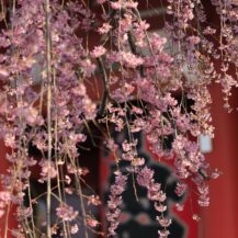 In this photo of Sensoji Temple, the cherry blossoms are in bright focus and the lanterns in the background are blurred to create depth and a soft atmosphere.