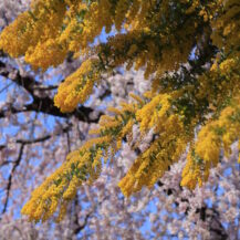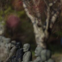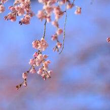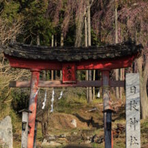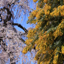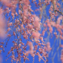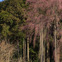 This photo was taken at Hie Shrine, combining the weeping cherry tree at the beginning of blooming with the torii gate.