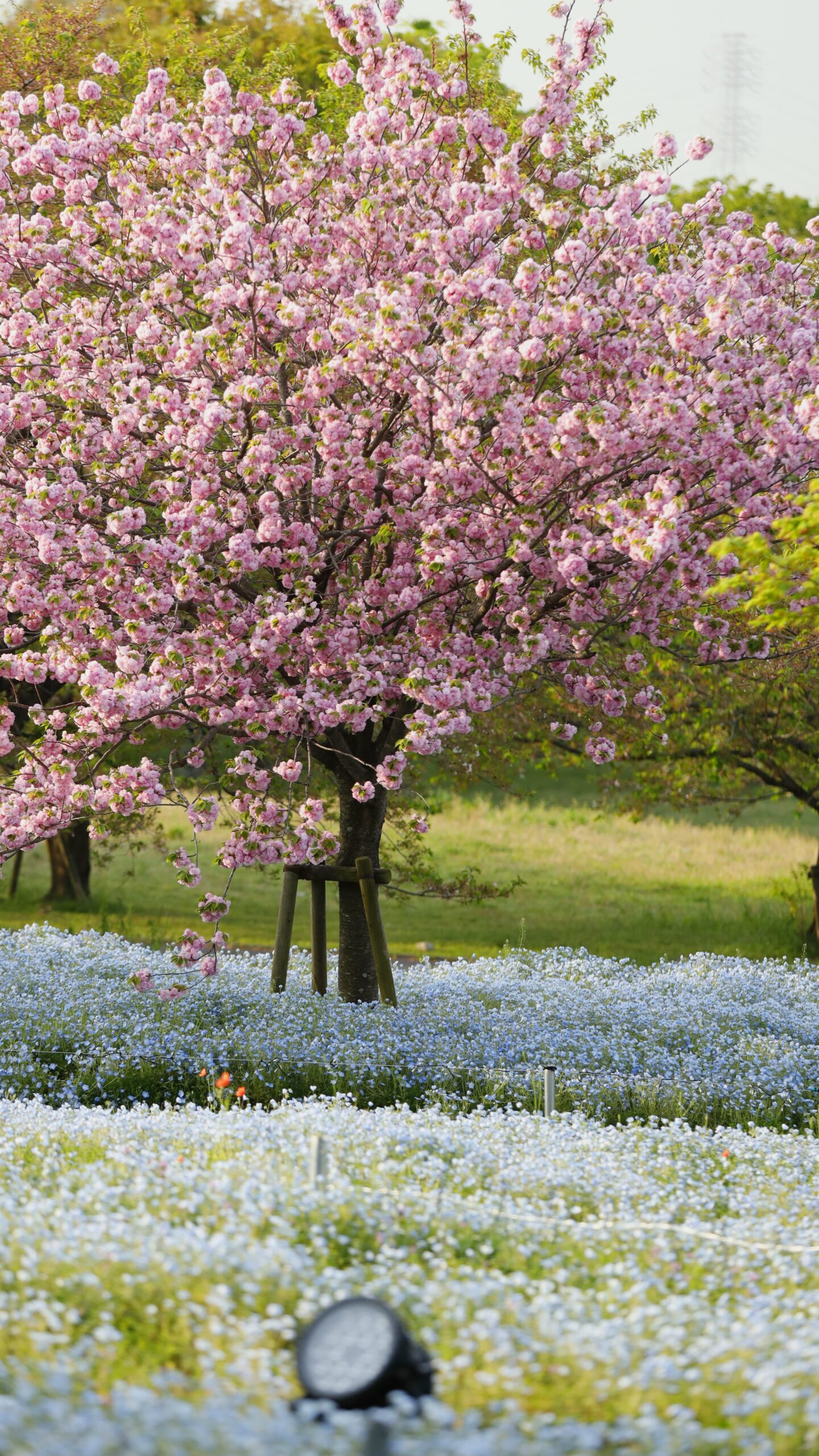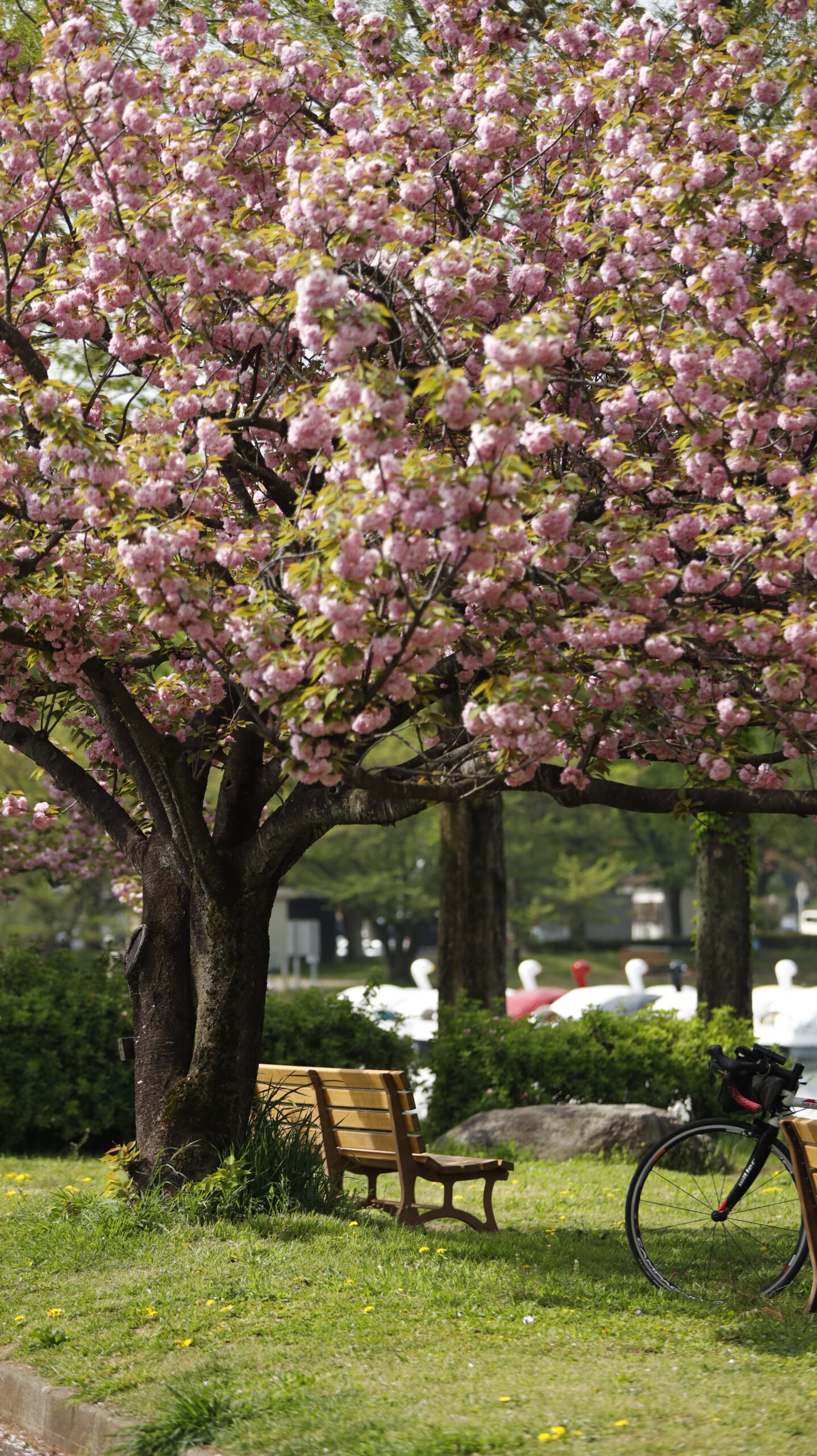 Late-blooming double-flowered cherry blossoms add gorgeous colors to the park. This is a relaxing hanami spot that can be enjoyed until the end of spring.