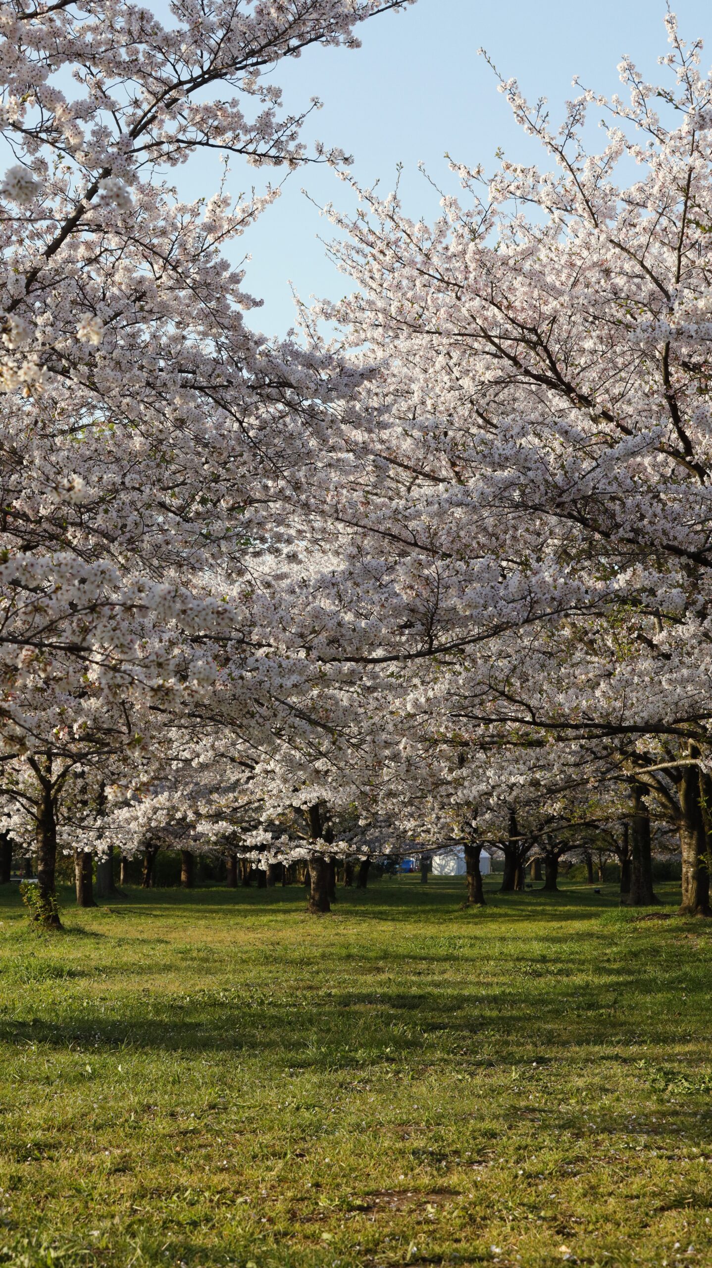 Someiyoshino cherry trees bloom in the spacious park. The park is also attractive for its calmness and the sense of seclusion that makes it easy to take pictures.