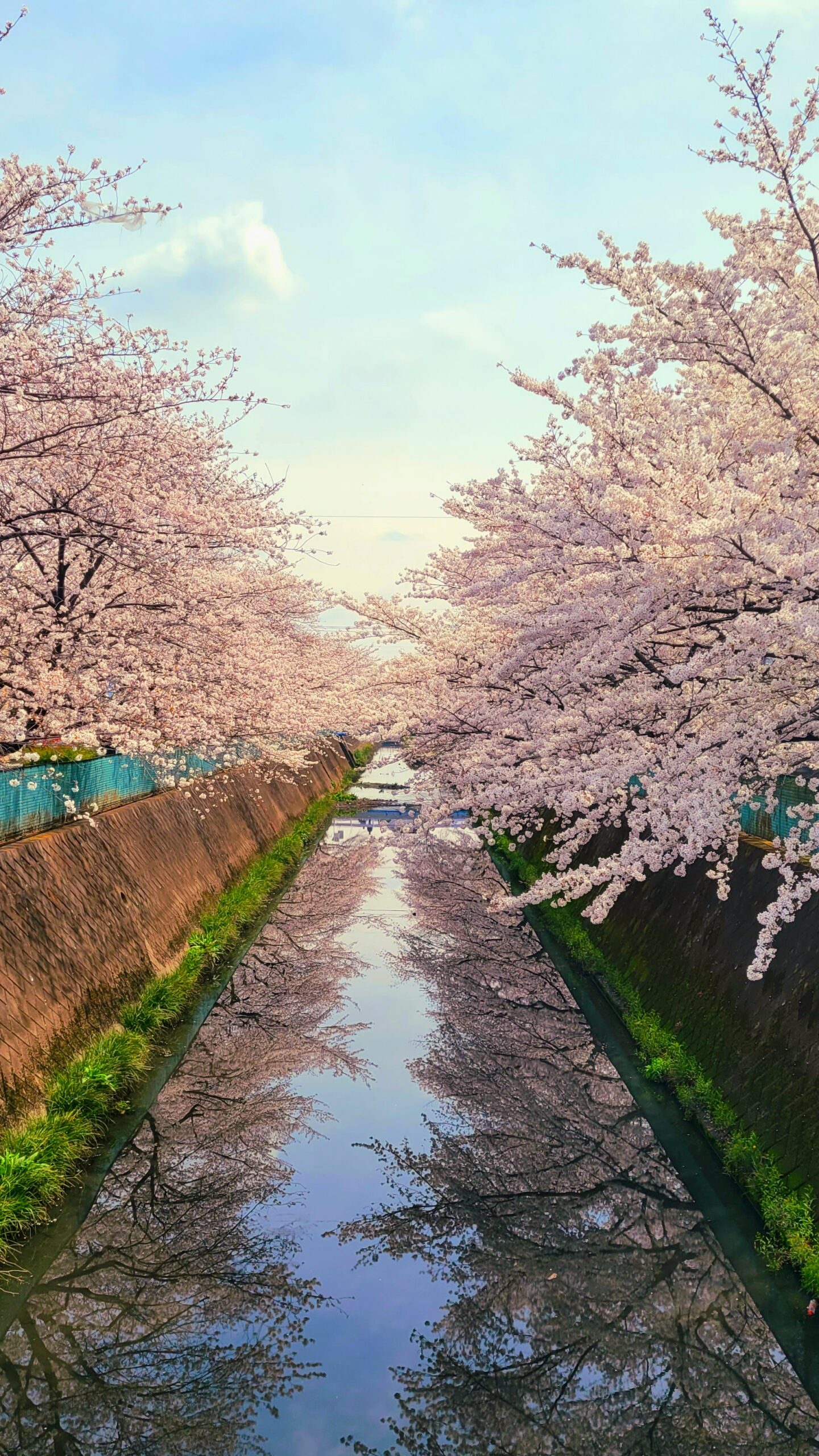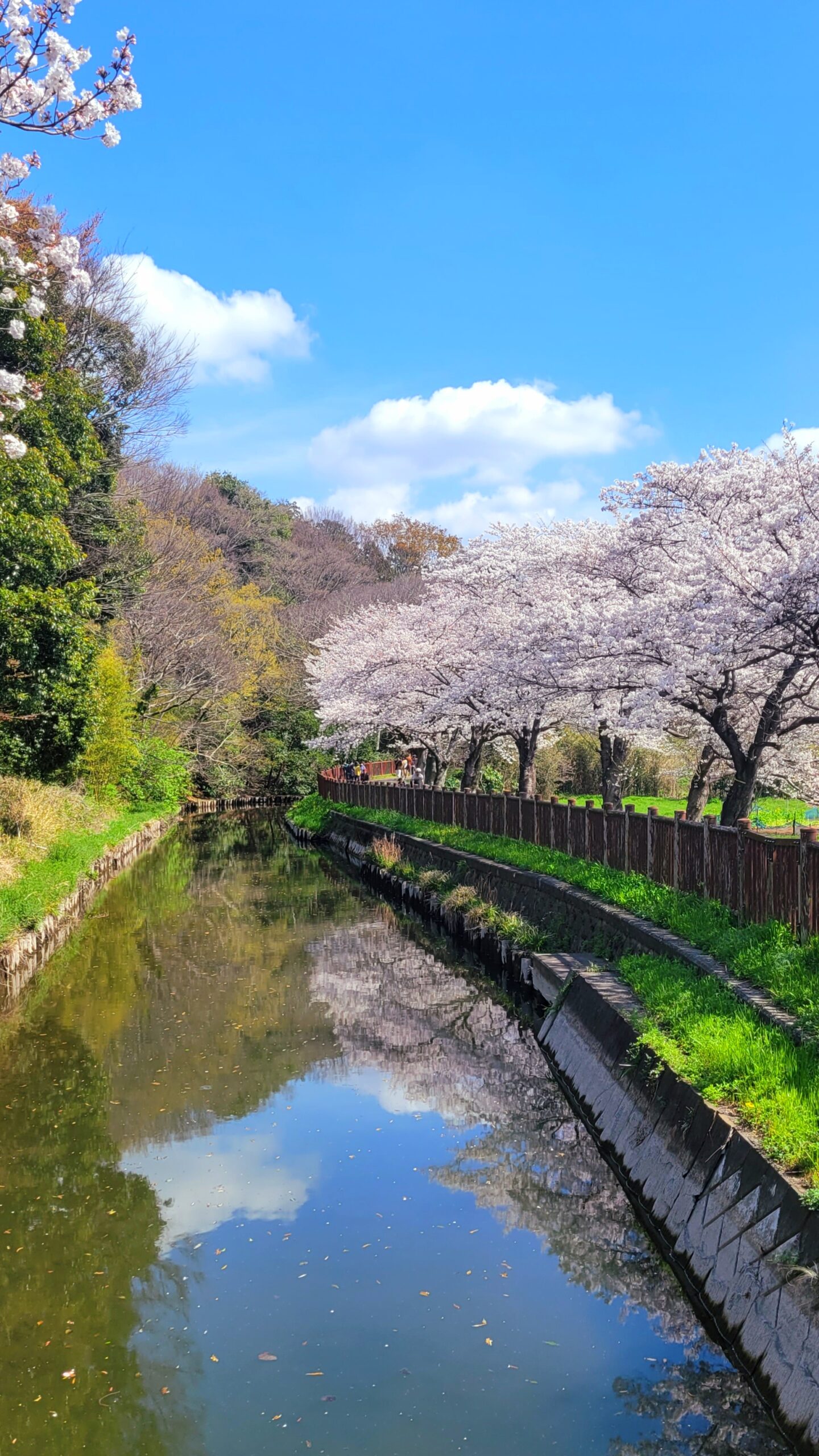 Someiyoshino cherry trees along the river are ideal for a spring stroll. It is a simple and friendly cherry blossom scenery.