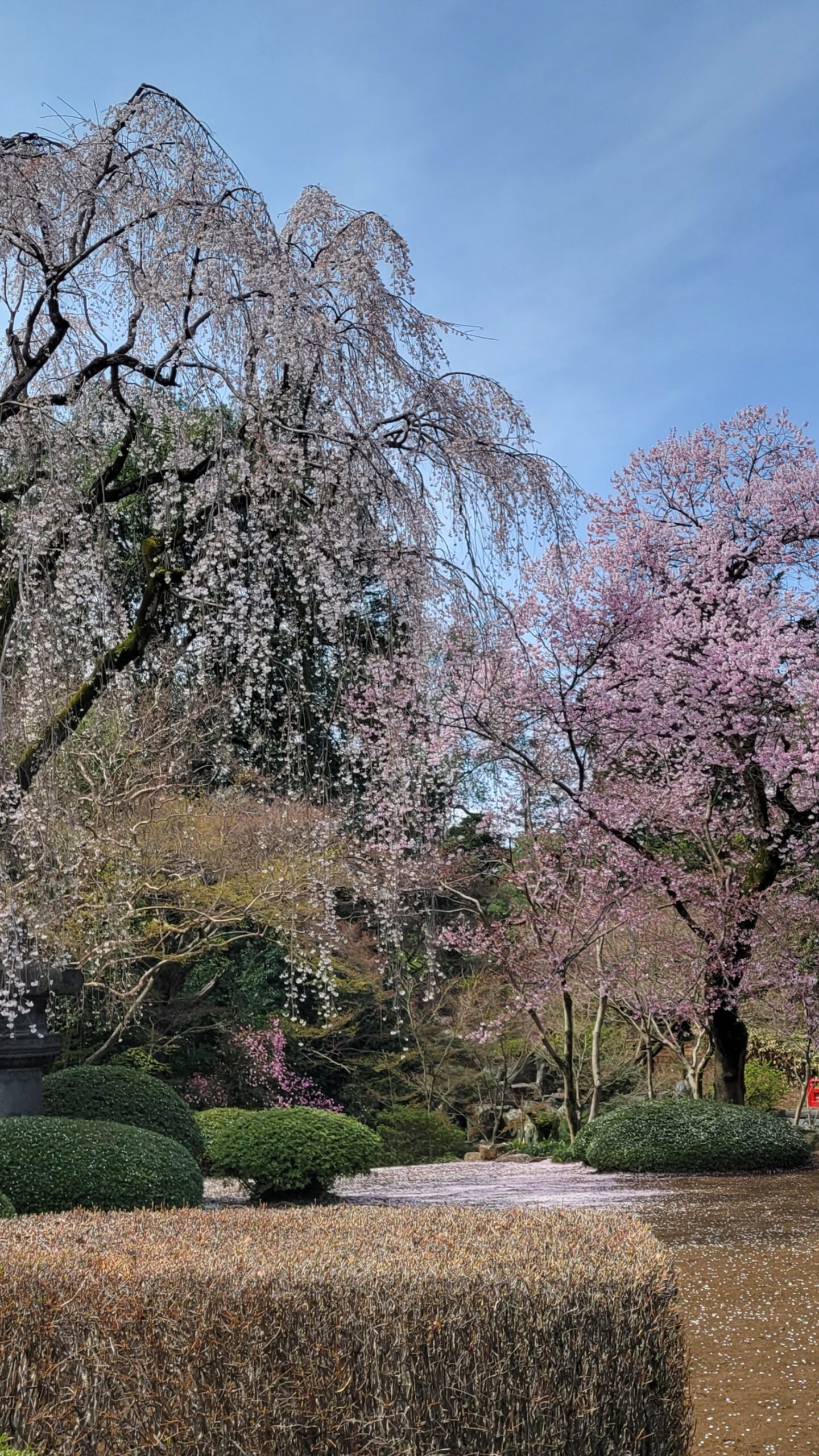 The weeping cherry tree that blooms as the star of the garden has an impressive presence. It is one of the most famous trees in Tokyo and is also beautiful when illuminated at night.