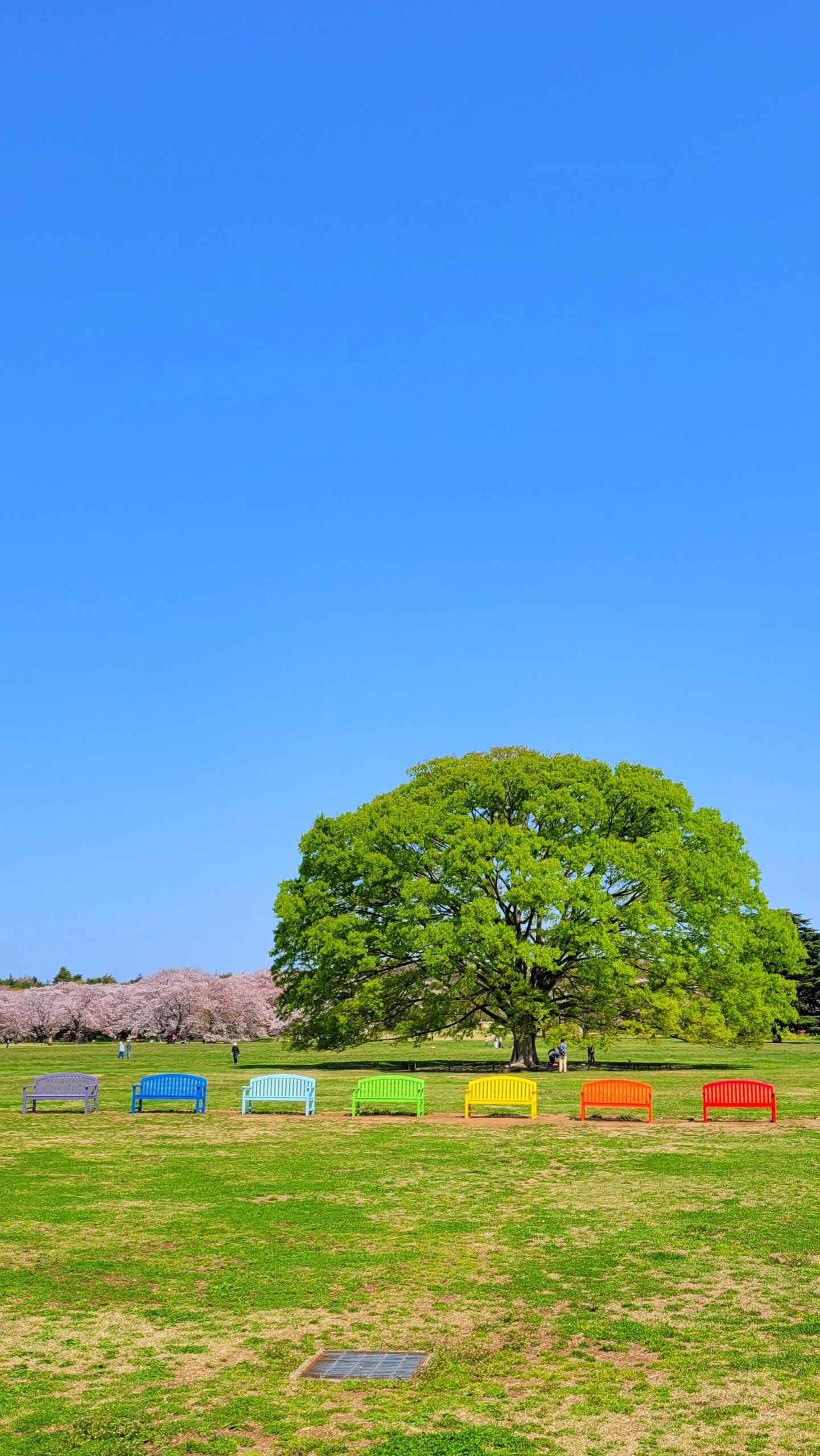 Someiyoshino cherry trees blooming in the spacious garden are so serene that it is hard to believe that you are in the heart of the city. It is a pleasant place to view cherry blossoms over the lawn.