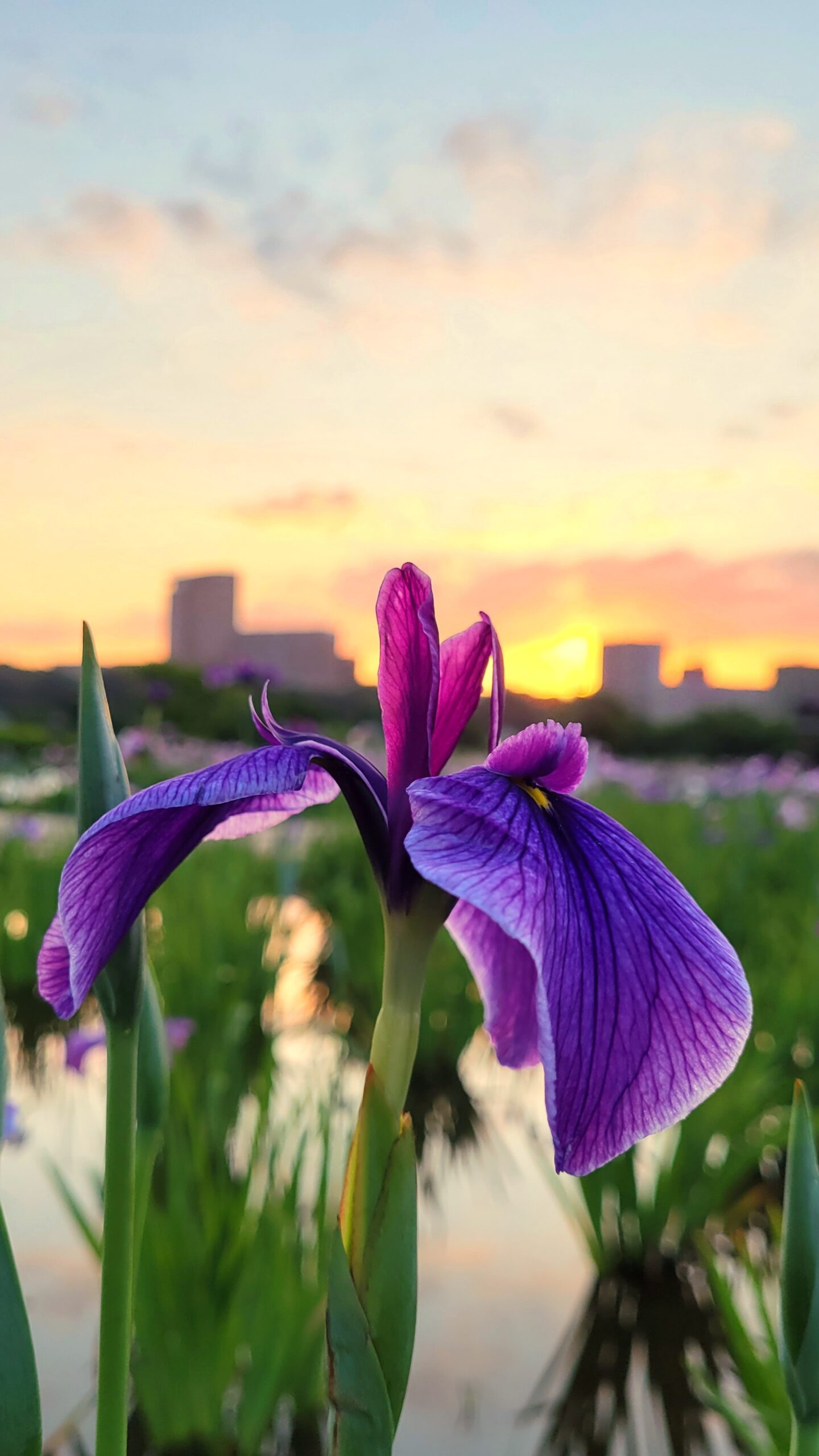 花菖蒲のすらりとした姿は、縦構図との相性が抜群。自然な流れを活かすことで、より洗練された印象になります。