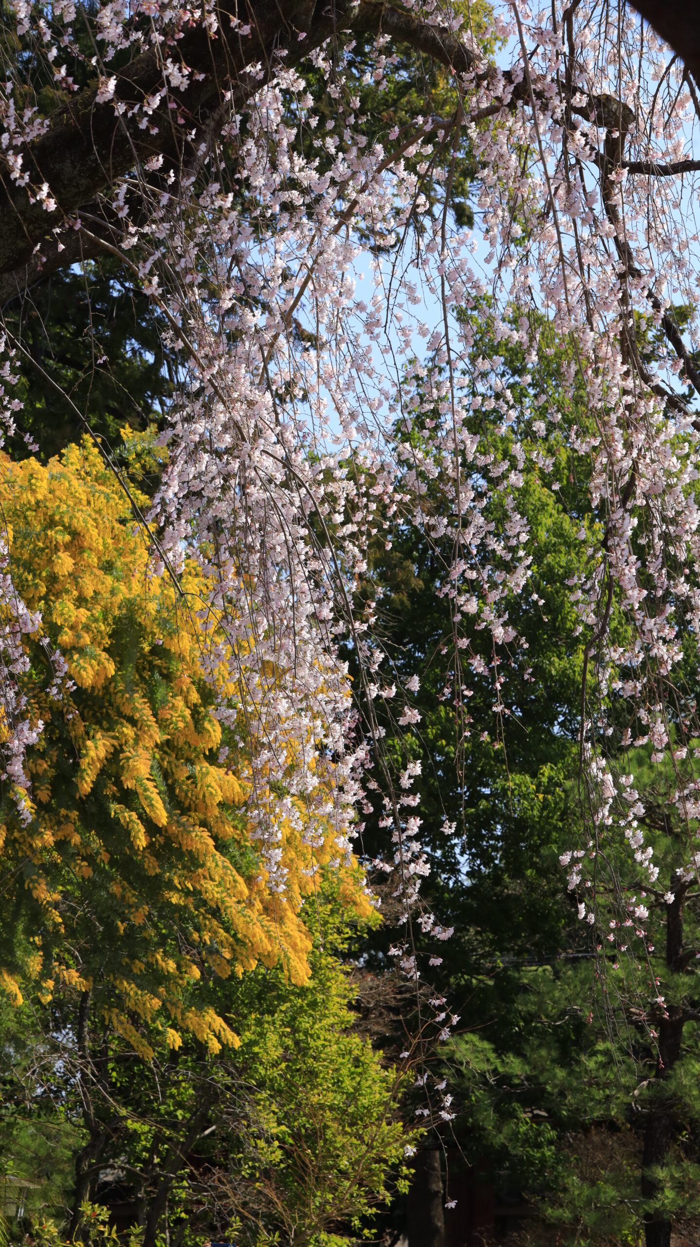 This photo is one that once again captures the gorgeous interplay of weeping cherry blossoms and mimosa at the Chūin temple from a different perspective.