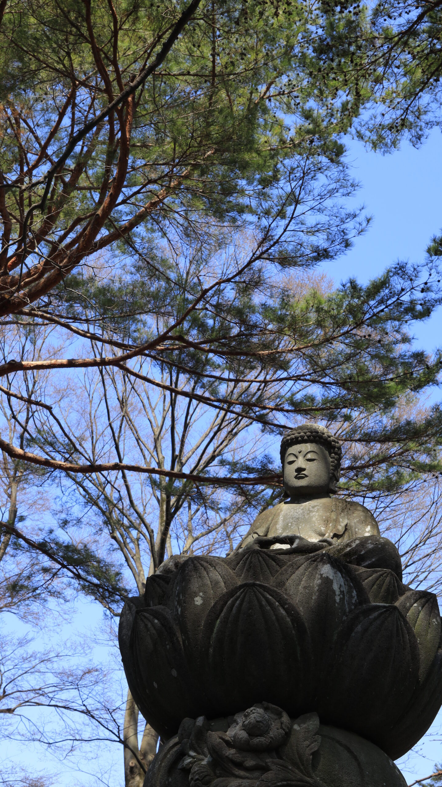 This photo was taken at the Five Hundred Arhats in Kita-in Temple, a combination of a Buddha statue and a pine tree.