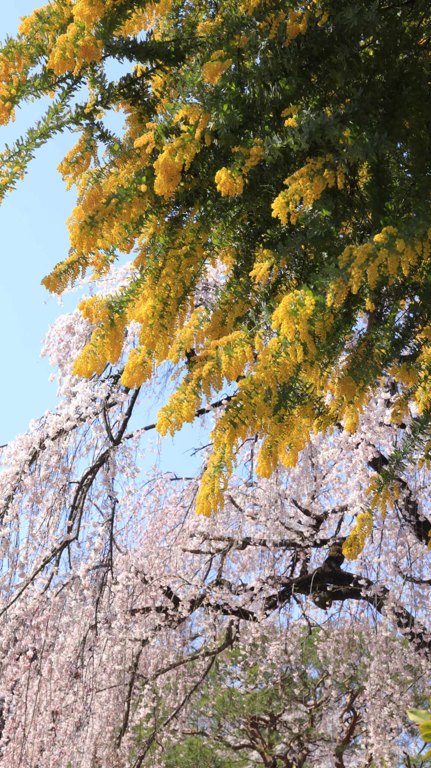 This photo was taken at the Chūin temple at a striking moment when mimosa overshadowed weeping cherry trees.