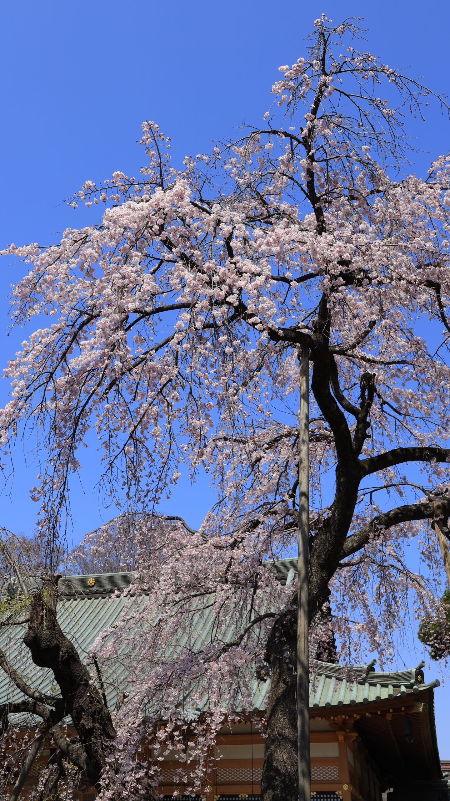 This photo is one of the weeping cherry trees at Hodan-ji Temple, with the composition looking up to emphasize the height and power of the tree.