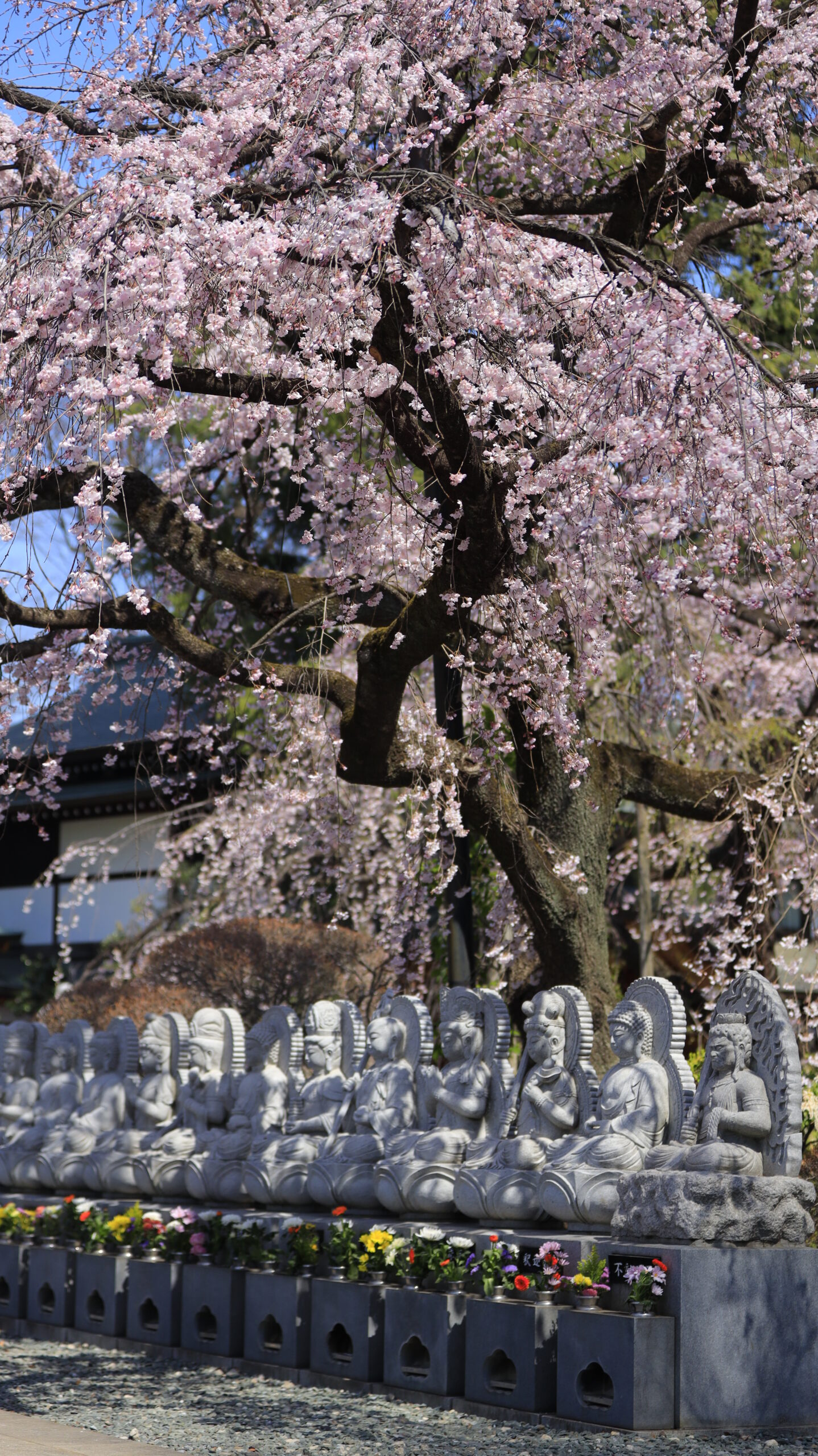 This photo was taken at Hodan-ji Temple, where I took advantage of a wide-open telephoto lens to capture the cherry blossoms and the Buddha image in a striking way.