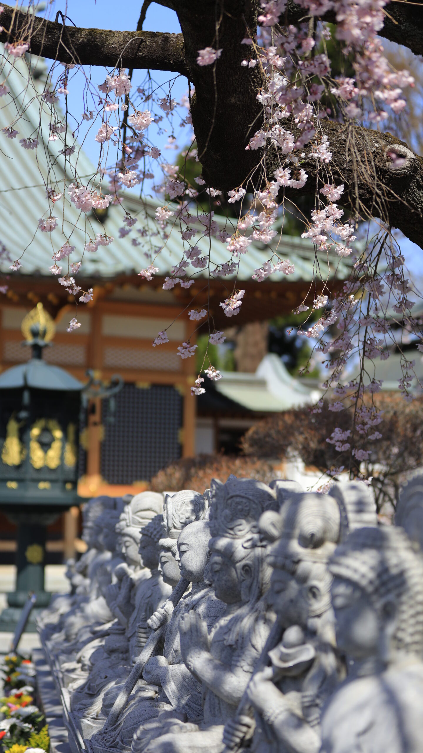 This photo was taken at Hodannerji Temple and was brightly focused on the central Buddha image and the cherry blossoms.