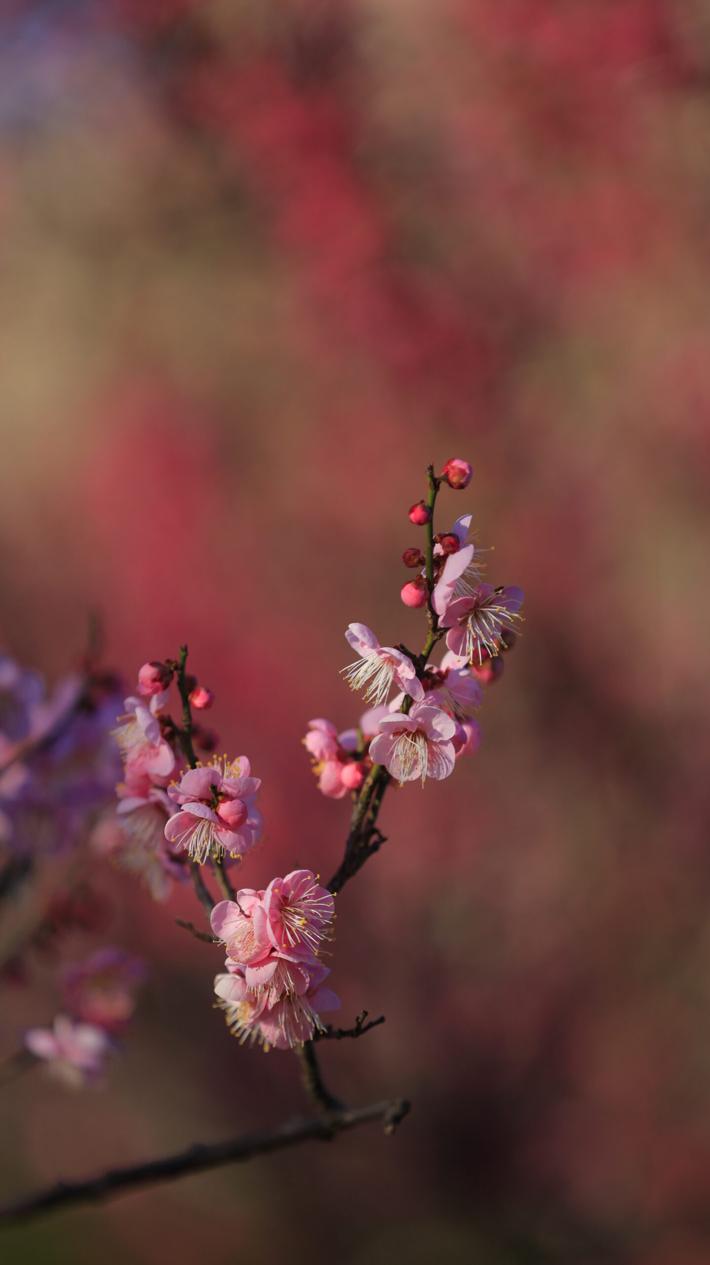 この写真は、羽根木公園で、形の綺麗な梅の枝を選び、背景に濃いピンクの梅を入れて、全体をやや濃い目でダークなトーンに仕上げて撮影したものです。