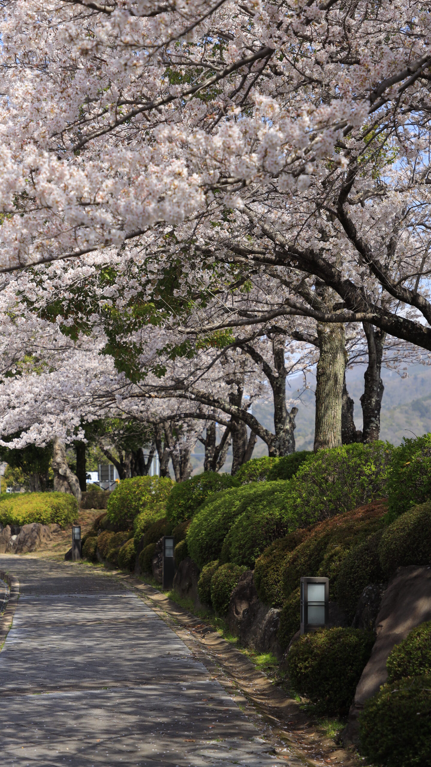 This photo was taken in Yamanashi Prefecture, where we were waiting for the shuttle bus to Minobu-san Kuon-ji Temple, to view the magnificent rows of cherry trees.
