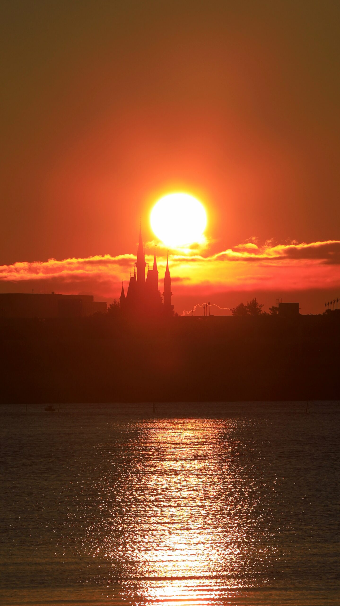 この写真は、葛西臨海公園で、F値を少し上げて、ディズニーランドのシルエットがくっきりと出るように意識し、日の出とともに撮影したものです。
