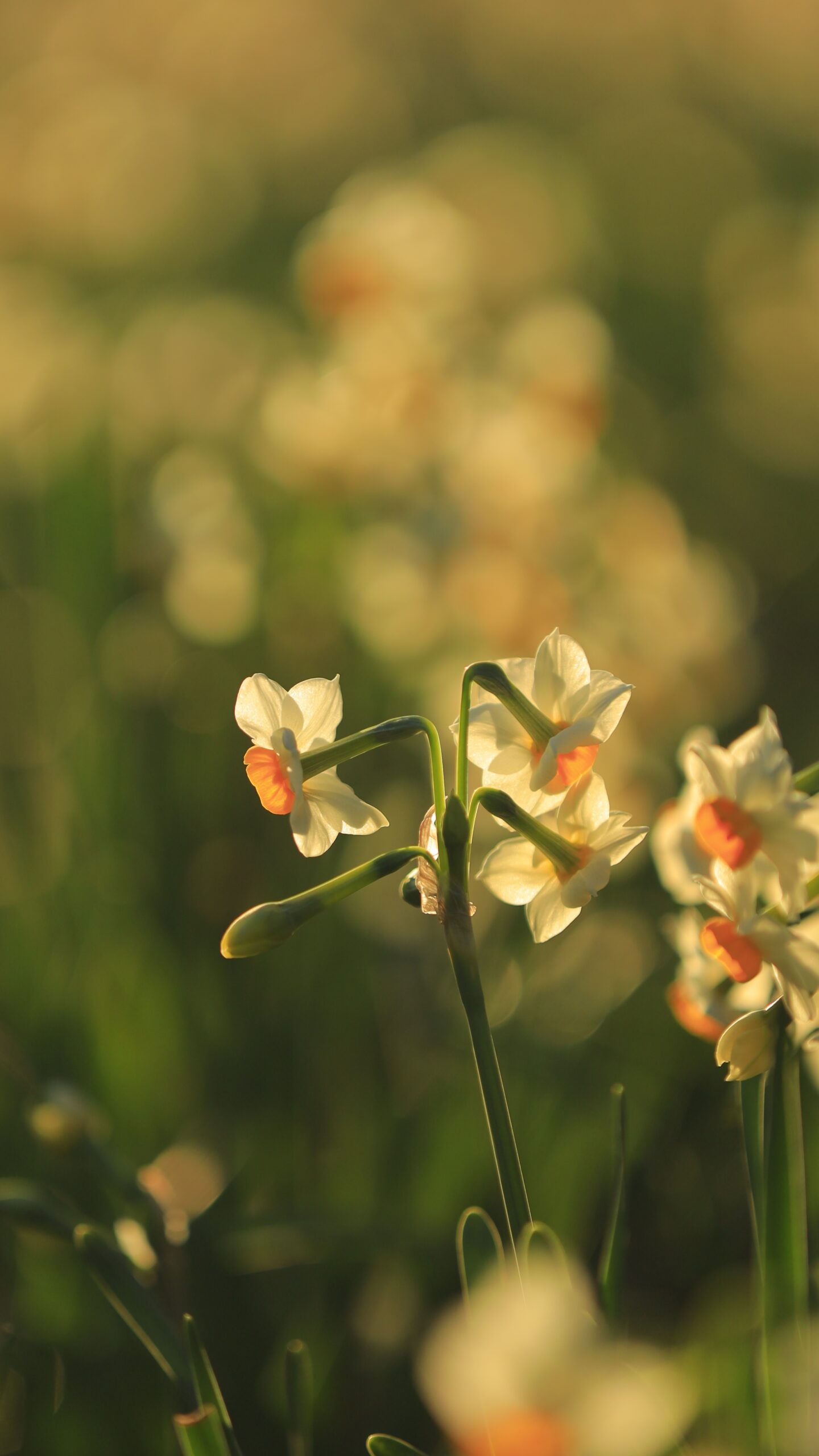 この写真は、葛西臨海公園で、水仙の花に少し近づき、アップで光に透ける様子を撮影したものです。花の細部まで楽しめる一枚です。
