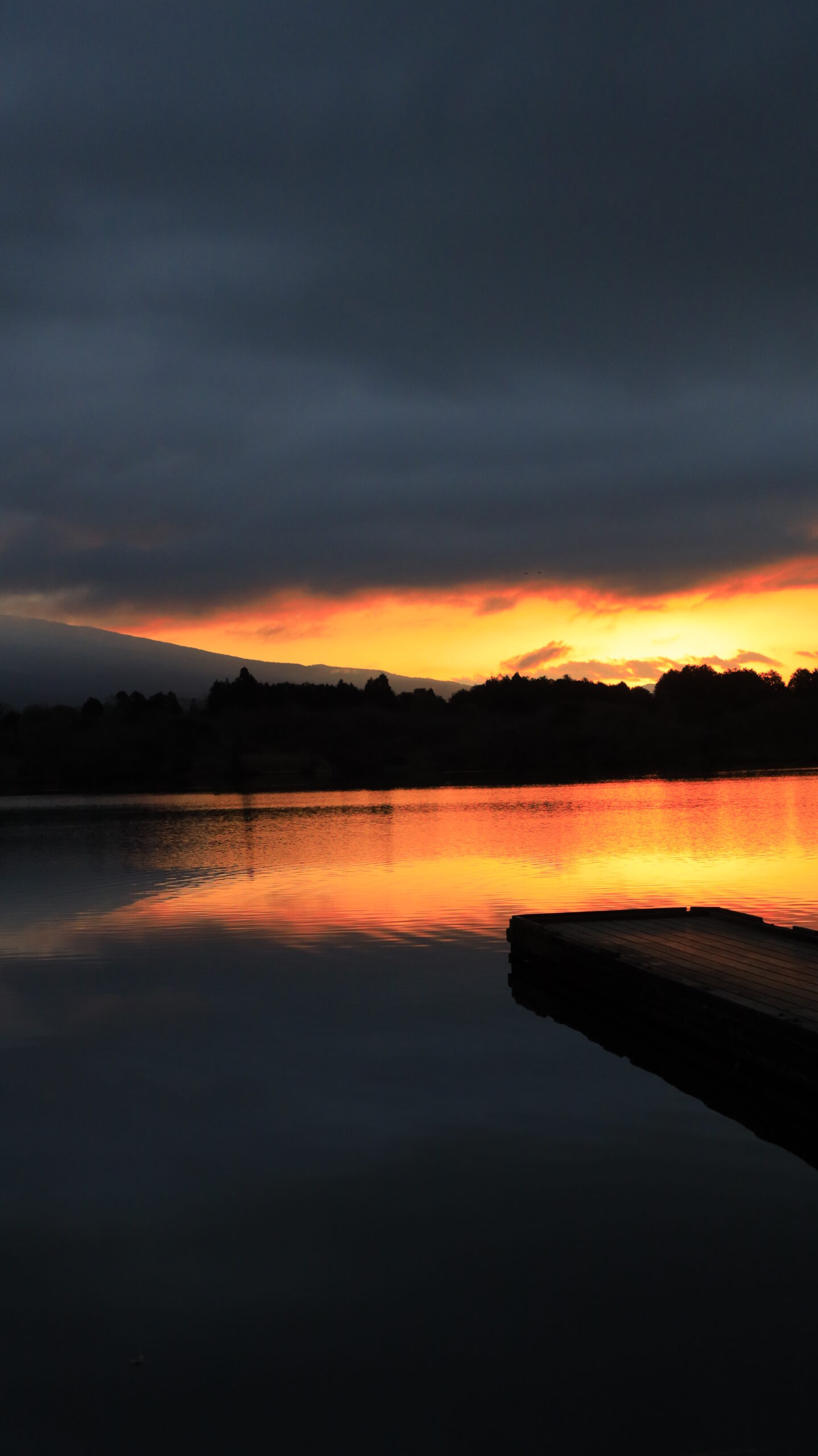 This photograph was taken at Lake Tanuki on January 1st, just as the sun was rising. Despite the sky being heavily clouded overhead, only the area around the sunrise itself remained partially clear. It captures a moment that left one anticipating what would unfold next.