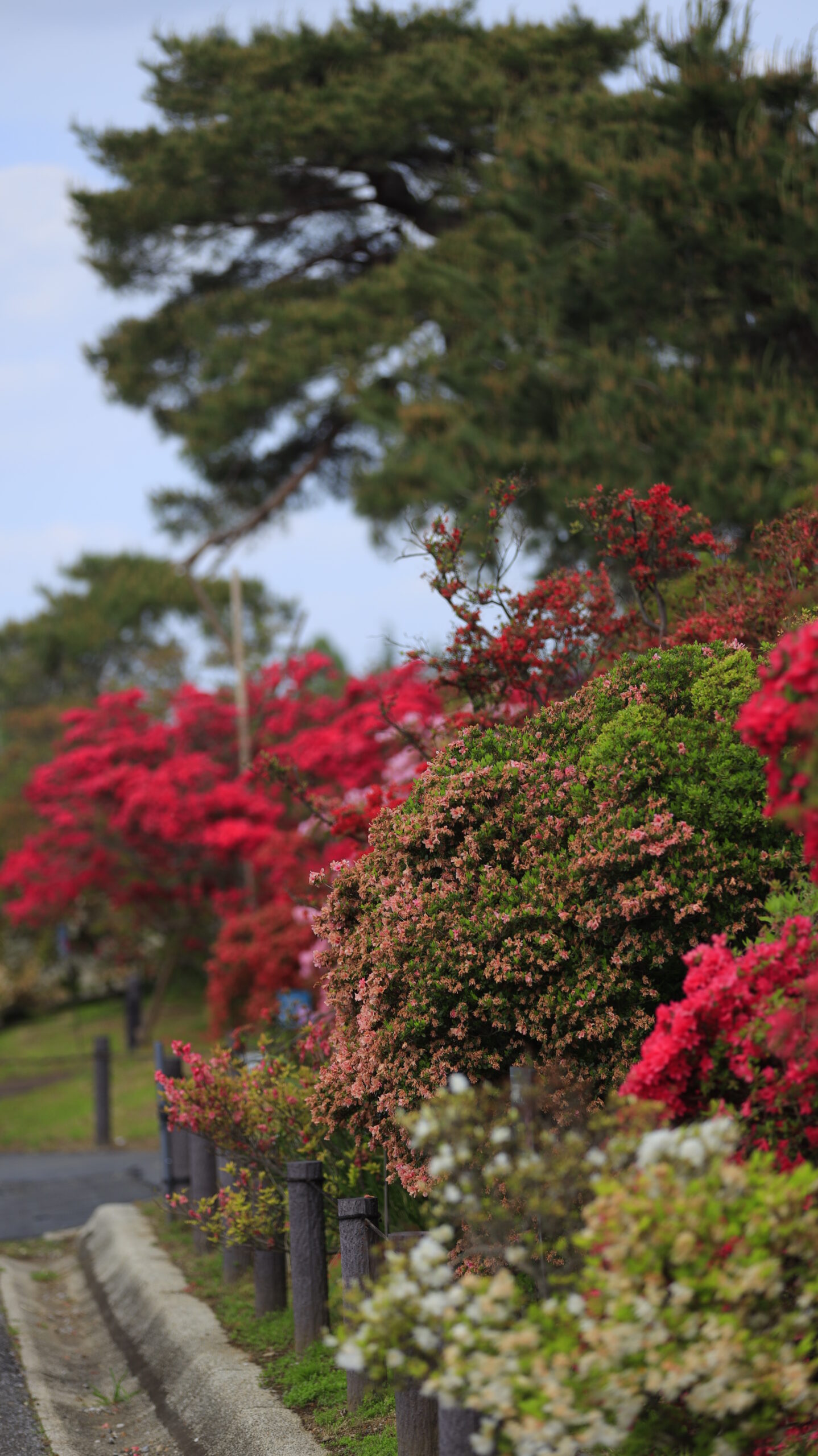 この写真は、つつじが岡公園(舘林)で、咲き誇るつつじを横側から撮影したものです。横から眺めることで、つつじの花が幾重にも重なって咲く様子が伝わり、春のつつじ名所らしい華やかさと奥行きのある風景を感じられる一枚になっています。