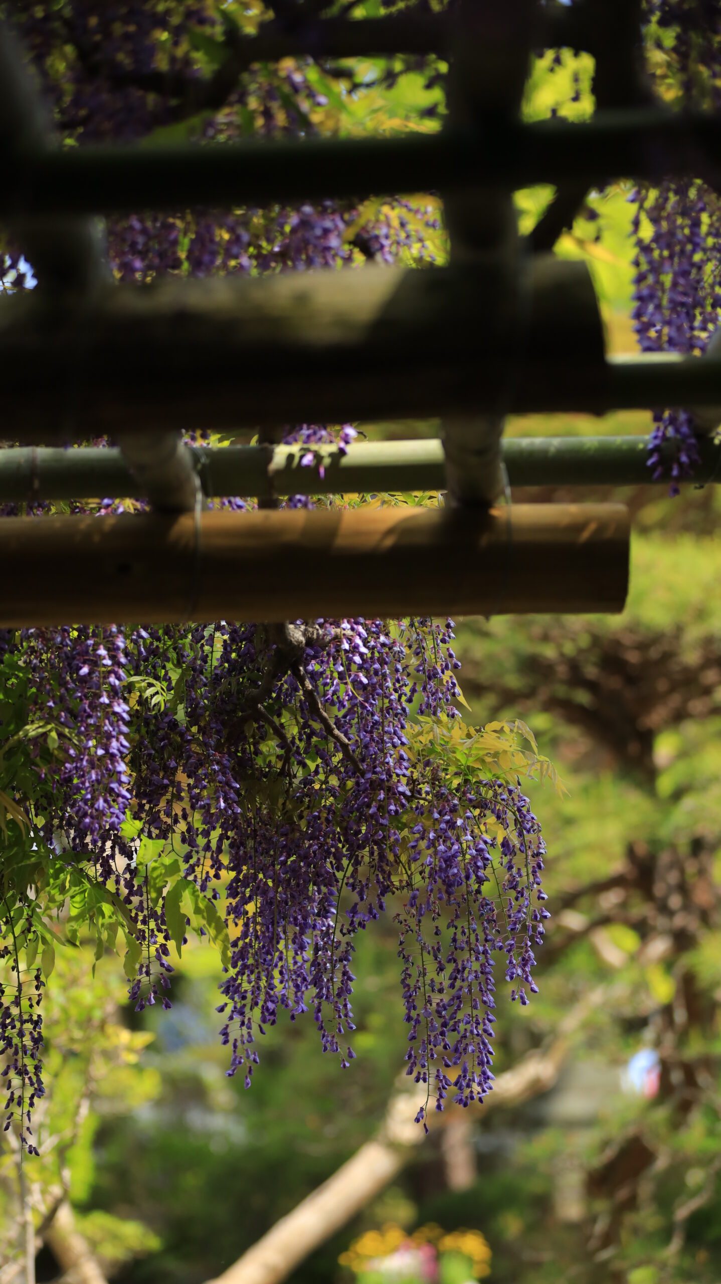 Wisteria flower garden (Wisteria at Ushijima)|From inside the wisteria trellis to outside