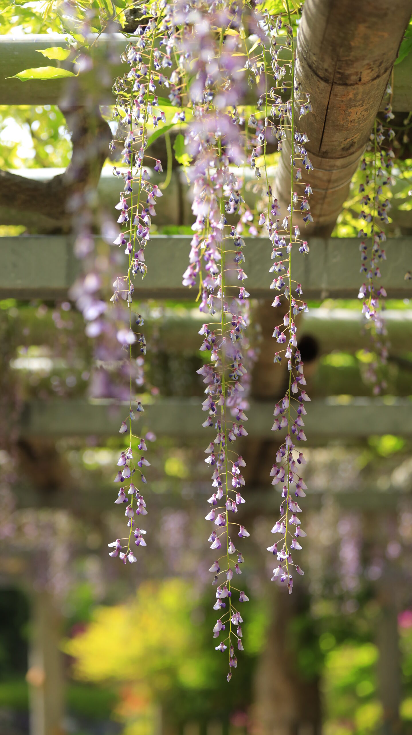 この写真は、久伊豆神社(越谷)で、綺麗に咲く藤の花に注目して撮影したものです。神社の静かな雰囲気の中で咲く藤を主役にすることで、上品で落ち着いた春の風景を感じられる一枚に仕上げています。