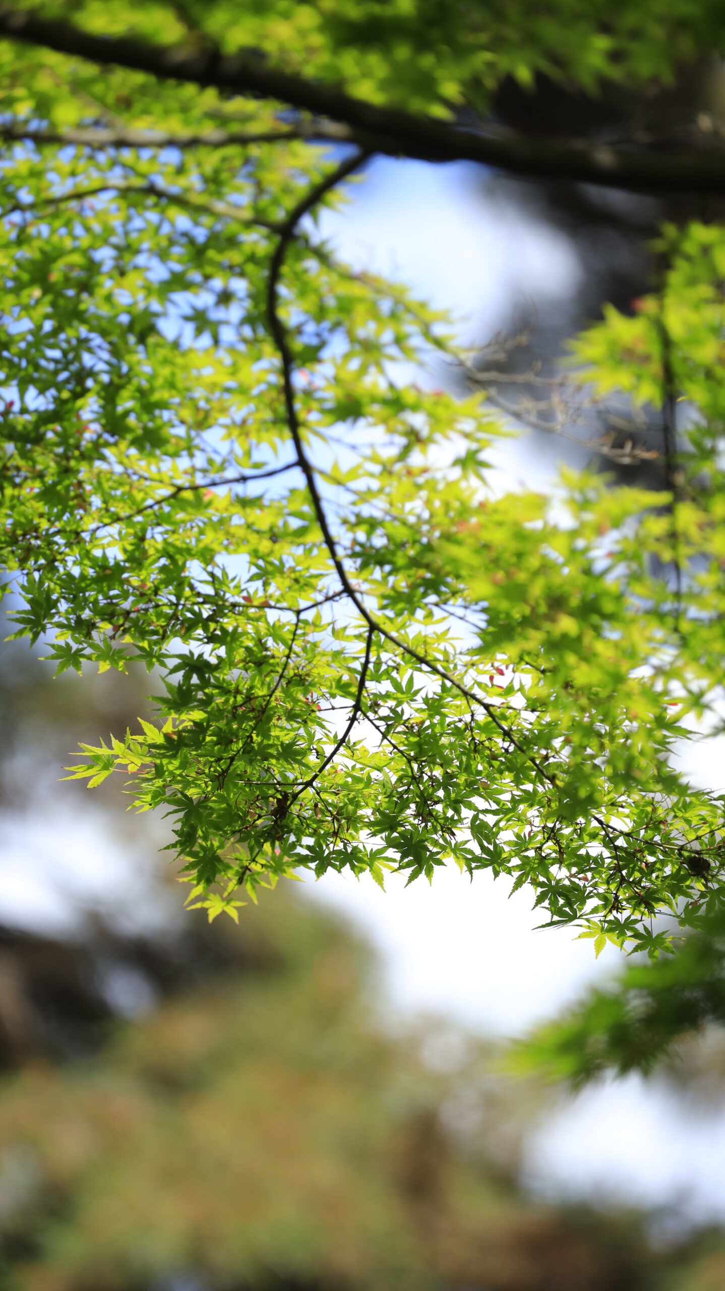 久伊豆神社(越谷)で下から見上げた青もみじの新緑