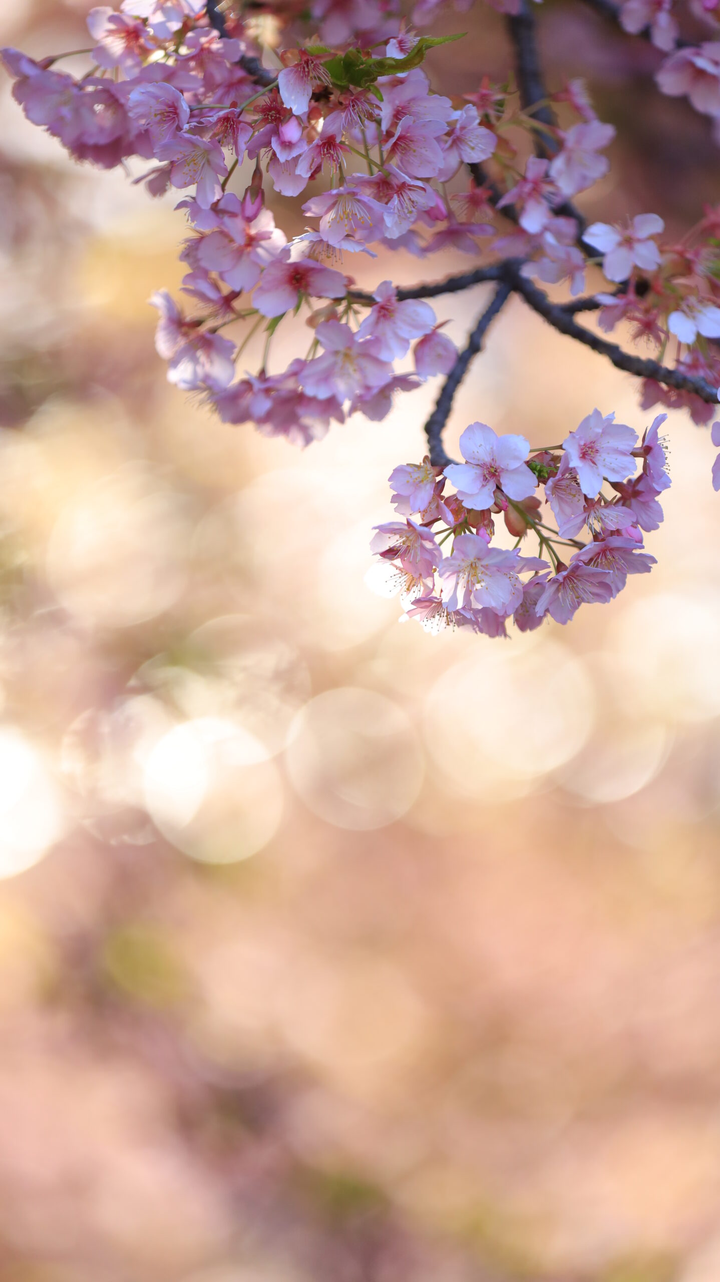 この写真は、浄源寺(岩槻)で、光が当たっていない河津桜にピントを合わせ、背景の光っている部分を玉ボケとして表現して撮影したものです。