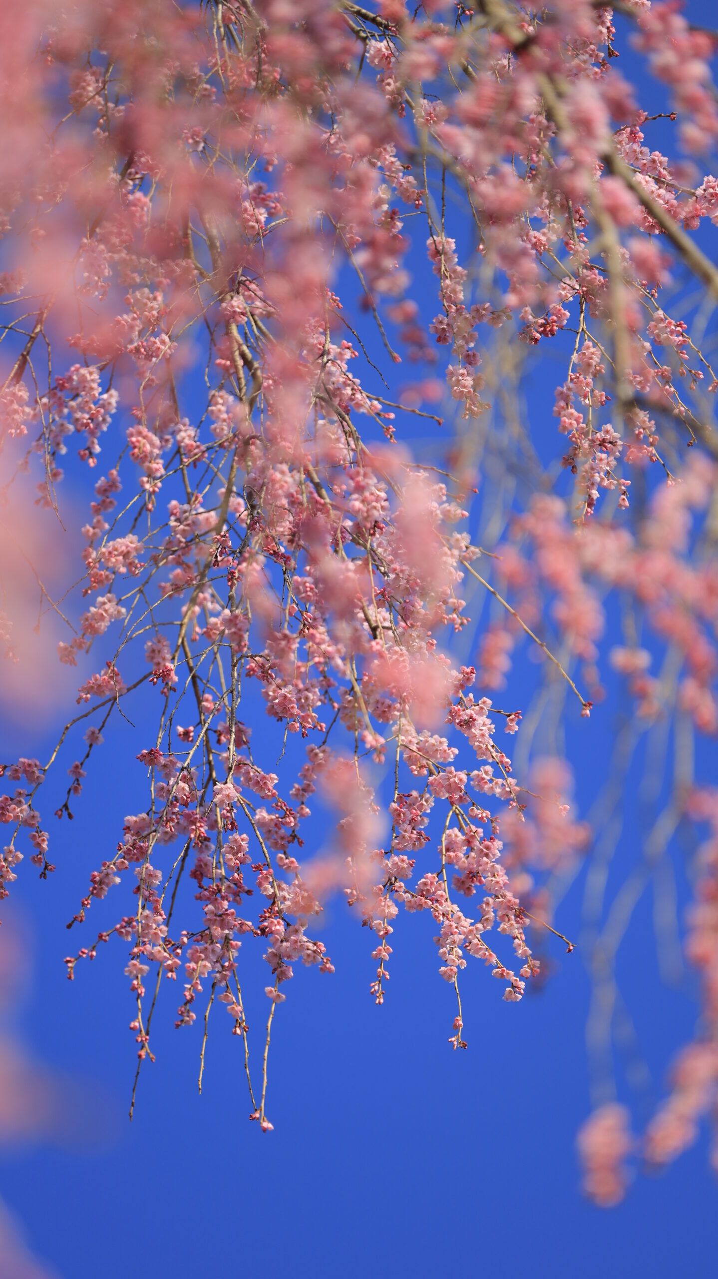 This photo was taken at Hie Shrine, focusing on the beautifully blooming part of the weeping cherry tree.