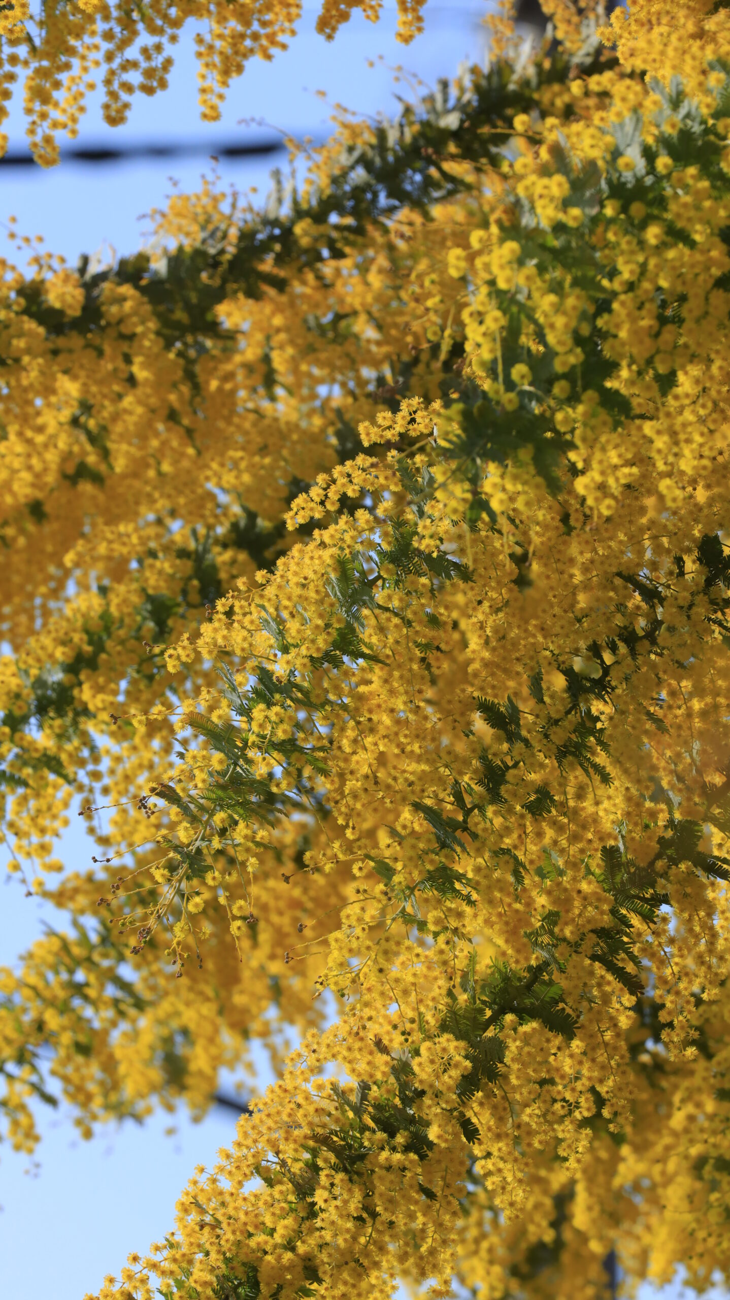 This photo was taken at Kyuzanji Temple with an eye toward the movement of the mimosa as it flows sideways.