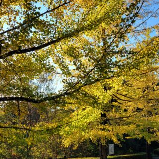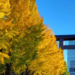 また、玉敷神社 の境内に立つ大きな銀杏は圧巻で、樹齢を重ねた風格と黄金の色彩が神聖な空気をまといます。靖国神社 では象徴的な大イチョウが並び、参道全体が黄金色に染まる光景は見事のひと言。新宿御苑 でも広場に立つ大きな銀杏がひときわ存在感を放ち、広大な芝生と青空に映える風景を見せてくれます。
